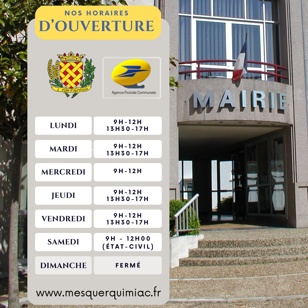 À la Une ! Horaires d’accueil Mairie et Agence Postale Horaires d’accueil Service Urbanisme Révision du PLUPlan Local d’urbanisme Actualités Nouveau dispositif santé… Conseil Municipal… Campagne d’élagage… Mesquer recrute… 16 ans… Élections municipales Cimetière… Recensement… Consultez l’agenda de nos évènements Cliquez avec réservation en ligne des évènements programmés à l’ArtyMès Vente de billets en ligne