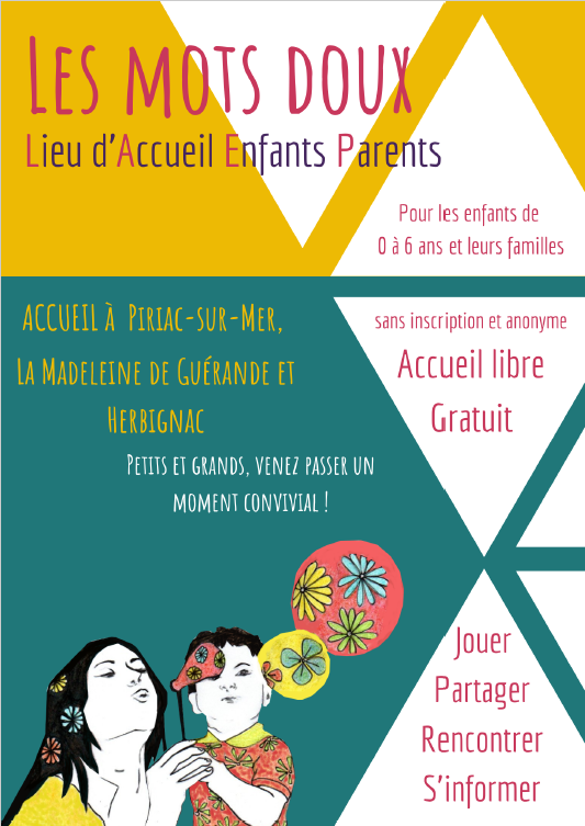Le LAEP Les Mots Doux est un Lieu d’Accueil Enfants-Parents pour toutes les familles accompagnées de leur.s enfant.s âgé.s de 0 à 6 ans ainsi que pour les futurs parents.