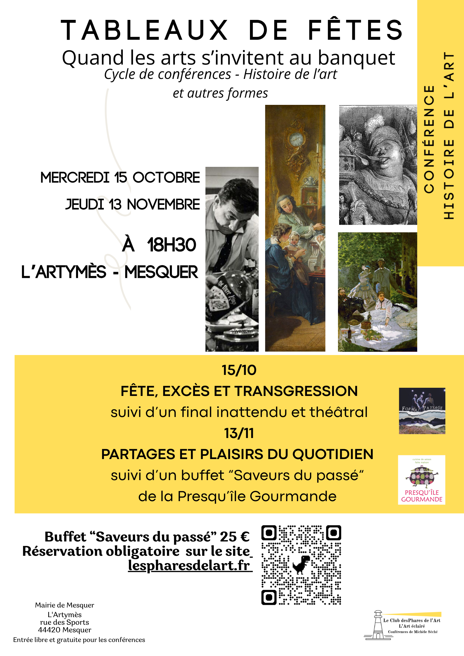 Les fêtes populaires, bals, kermesses, fêtes nationales, ont donné lieu à de nombreuses représentations. Observons l’univers énigmatique et foisonnant de Brueghel l’Ancien; Découvrons les “nuits parisiennes” quand le XIXe siècle réinvente les fêtes populaires sources d’excès, de débordement, d’ivresse. La fête n’est-elle pas aussi le théâtre de la décadence et de l’orgie, quand le plaisir se fait vertige ? La conférence vous propose un voyage au cœur de ces fêtes où se mêlent jubilation, débordements et secrets.