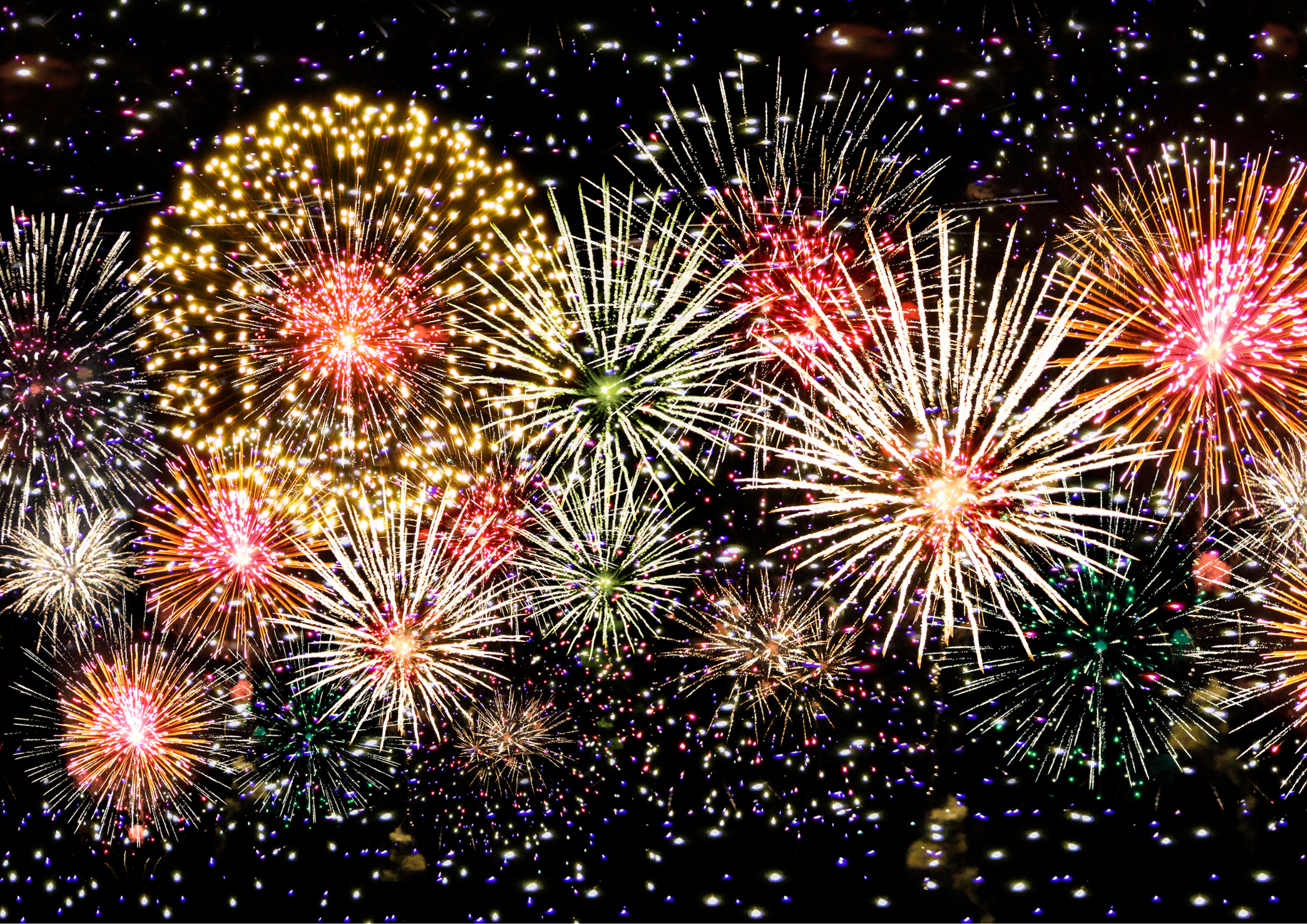 Feu d’artifice (offert par la mairie) à la tombée de la nuit.